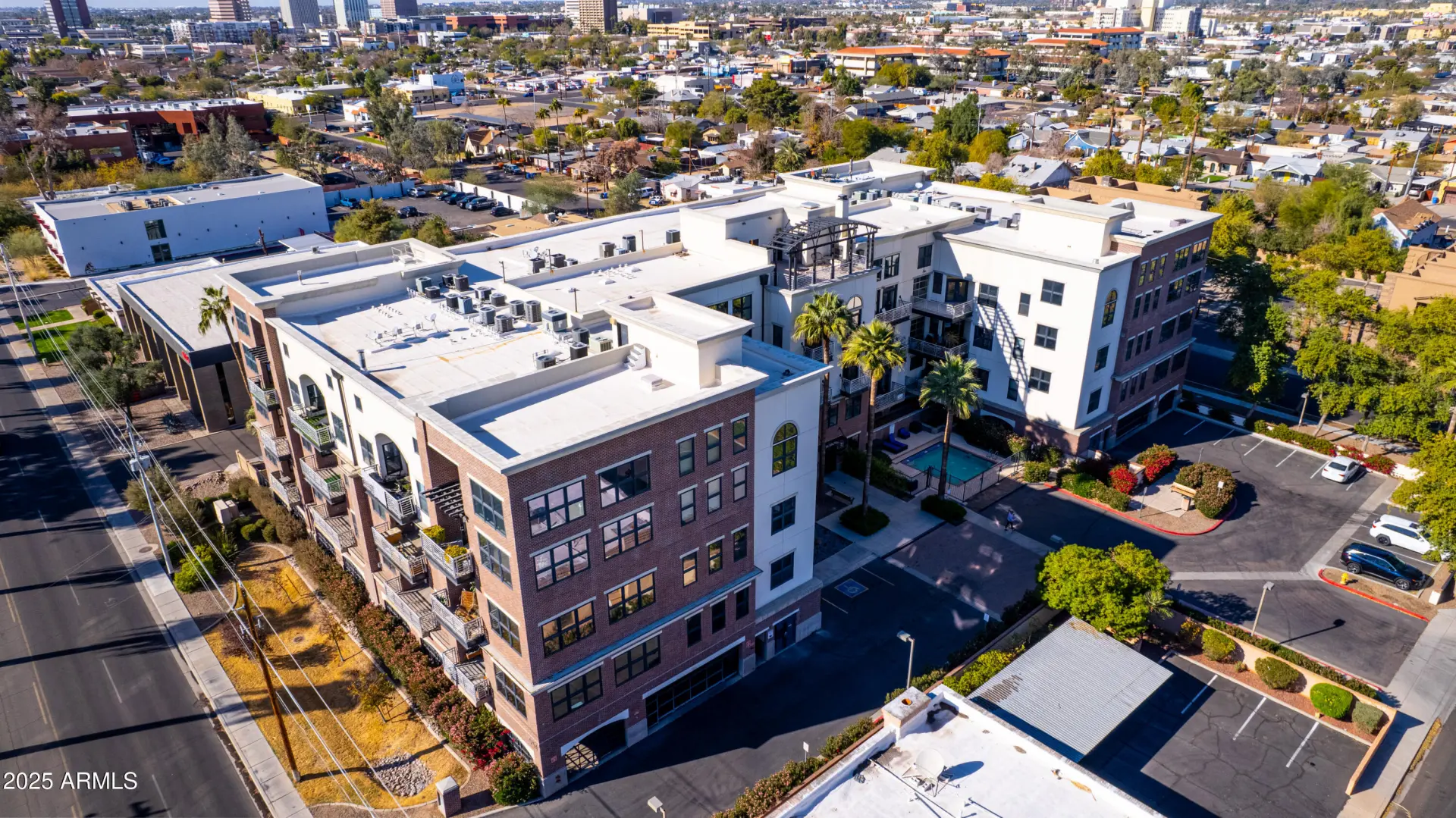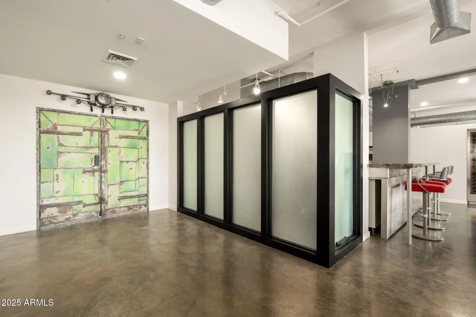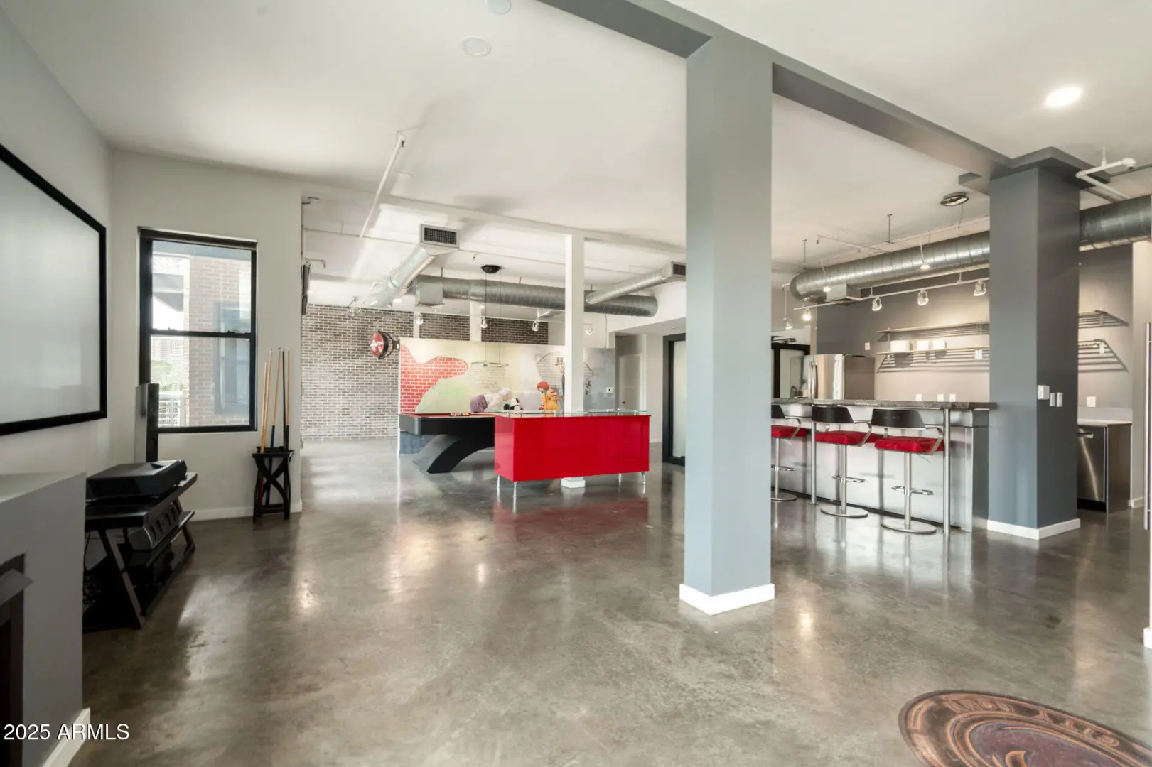Step into a truly distinctive condo offering effortless, modern living with an edge. Located directly across from the iconic Phoenix Country Club, this rare double-unit residence has been seamlessly combined to create an expansive, open-concept layout that stands apart from anything else on the market. Designed with style & functionality in mind, the home features polished concrete floors, exposed ductwork, & an industrial-chic aesthetic that feels both bold & refined. Two private balconies provide striking views & an ideal backdrop for morning coffee or evening unwinding. The contemporary kitchen is outfitted w/ stainless steel countertops, appliances, & finishes, delivering a clean, modern look that complements the space perfectly. Built for entertaining, the generous living area